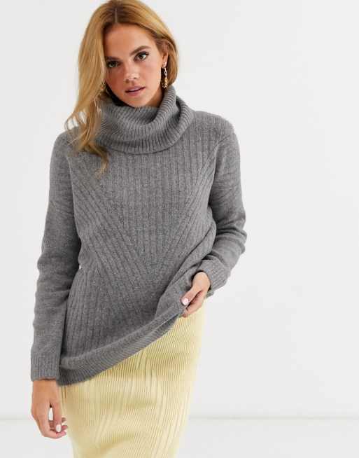 La version longue du pull à col roulé pour femme est pratique et astucieuse.