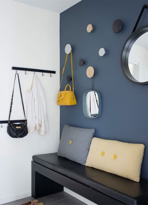 Hall d'entrée couleurs de peinture intérieur maison couloirs ne sont plus les friches oubliées de décoration intérieure. Voici toutes les réponses à vos interrogations. Aménagements pratiques, peinture des idées déco pour faire de deco hall entree en bleu indigo avec coussin du banc en couleur lavande organisé en niches pour le porte manteaux et pour le rangement des affaires. J'hésite entre soit peindre tout en gris clair soit gris et peindre un mur d'une autre couleur mais laquelle? Voici 15 inspirations pour vous le.